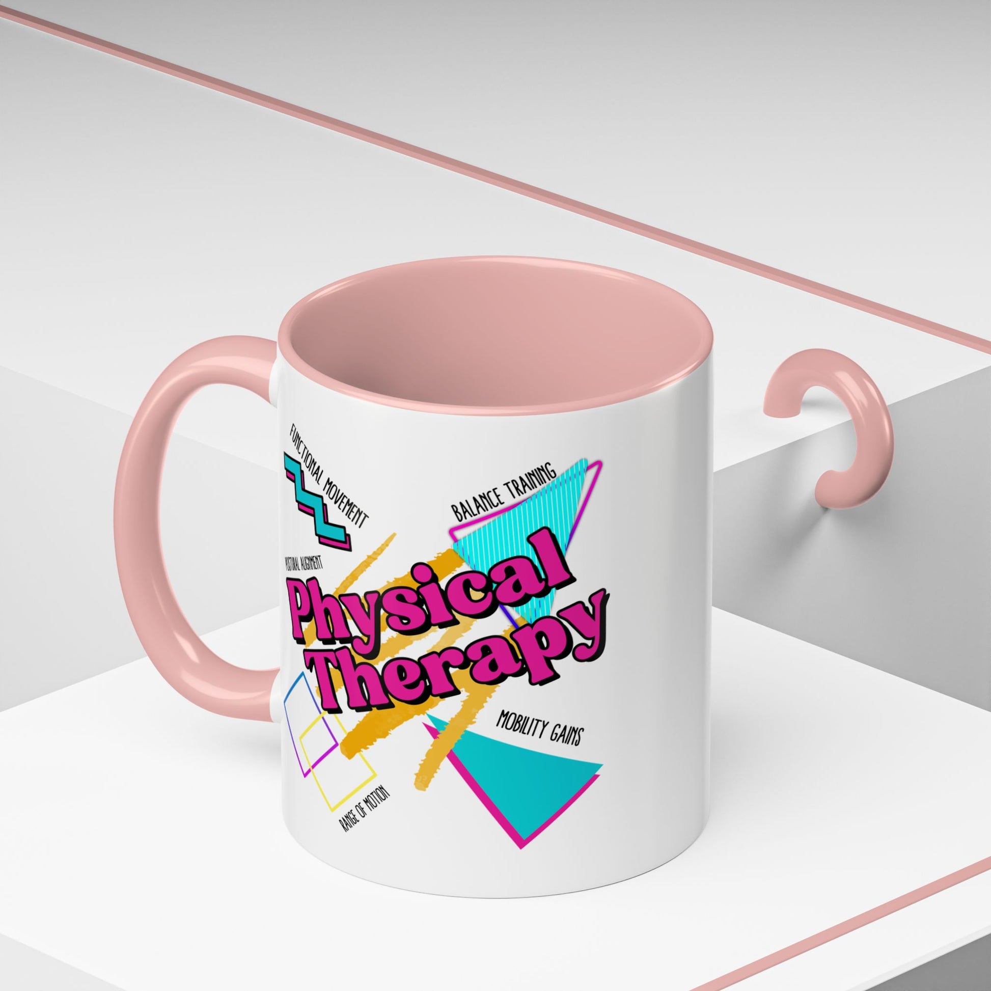 This 90s style physical therapy mug is perfect for physical therapists and physical therapist assistants. It exudes a retro vibe and adds a fun touch to your morning coffee routine. Ideal for those in the physical therapy field or anyone who loves nostalgic designs. Relevant for Physical Therapy Month, National Physical Therapy Day, or as a thoughtful gift for a physical therapist.