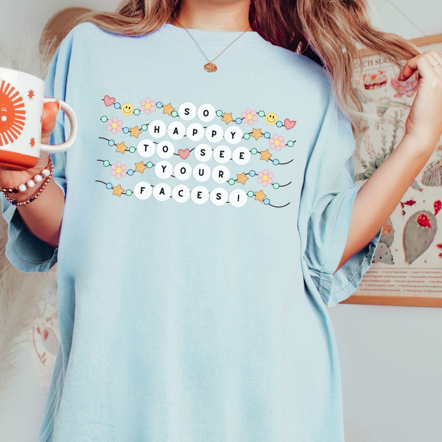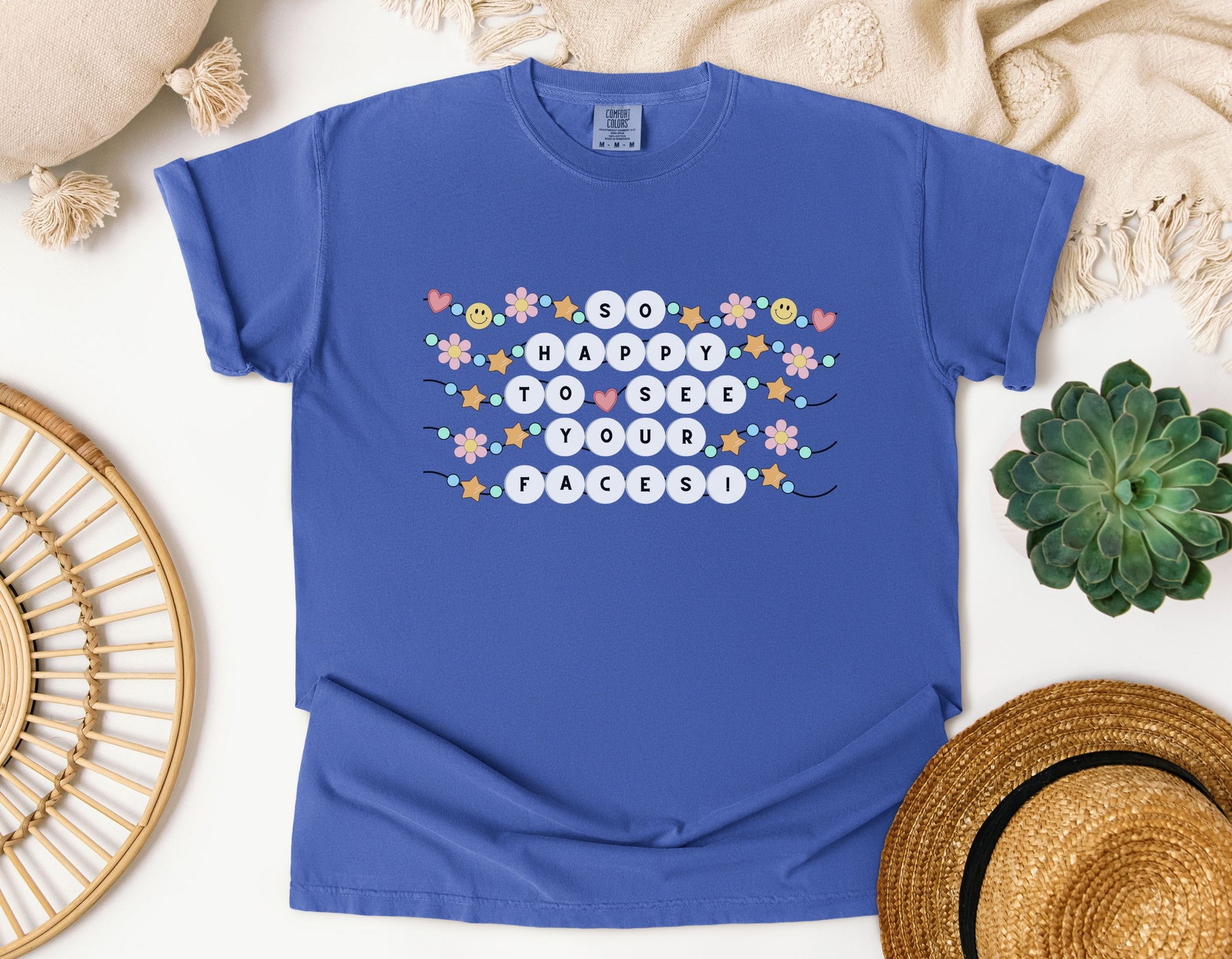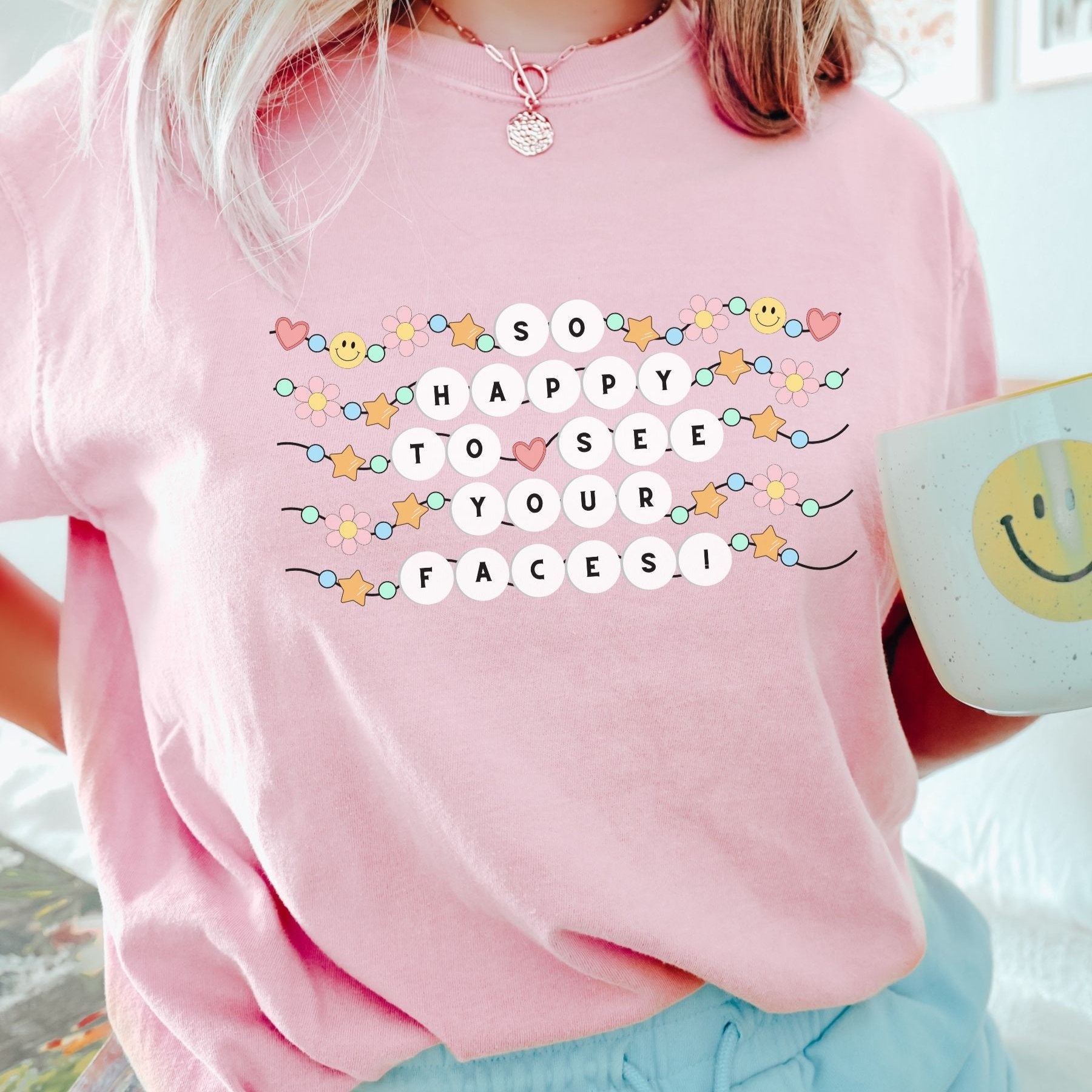 Back to School Friendship Bracelet Teacher shirt, happy to see your faces, gift for teacher para, Unisex Comfort Colors® 1717