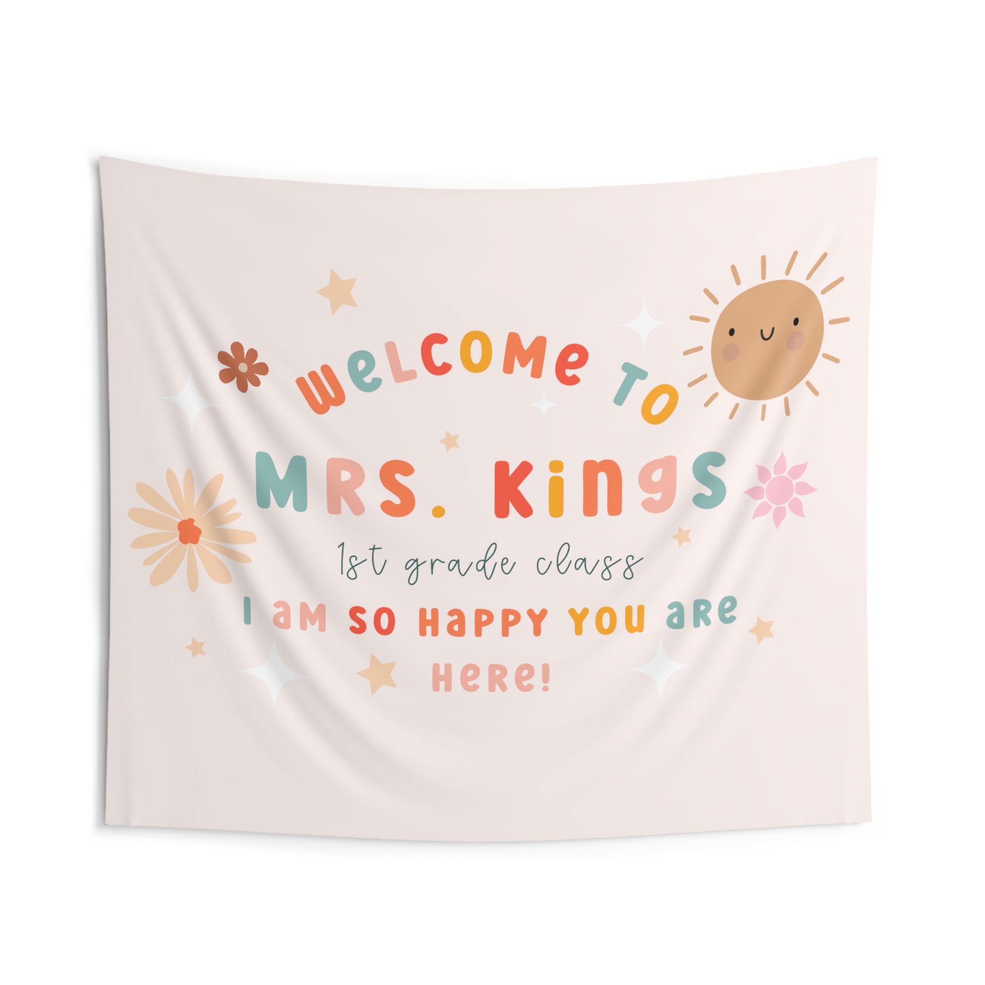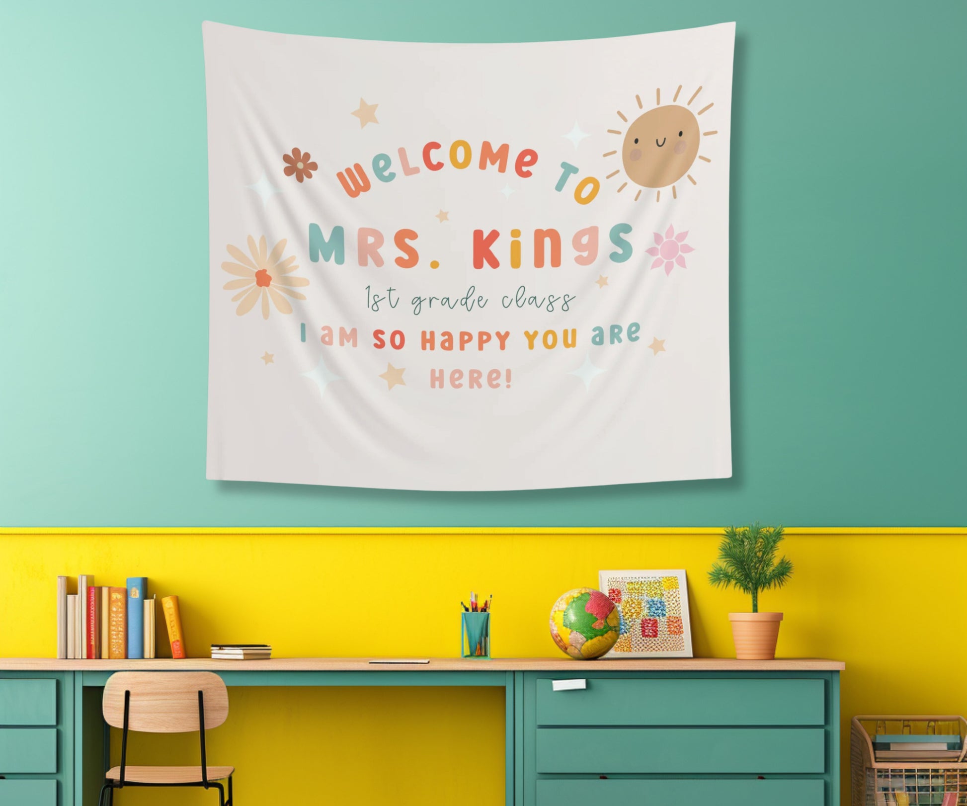 Boho Classroom Tapestry, Personalized Class Decor, Retro classroom decor, Teacher wall art, Classroom welcome sign