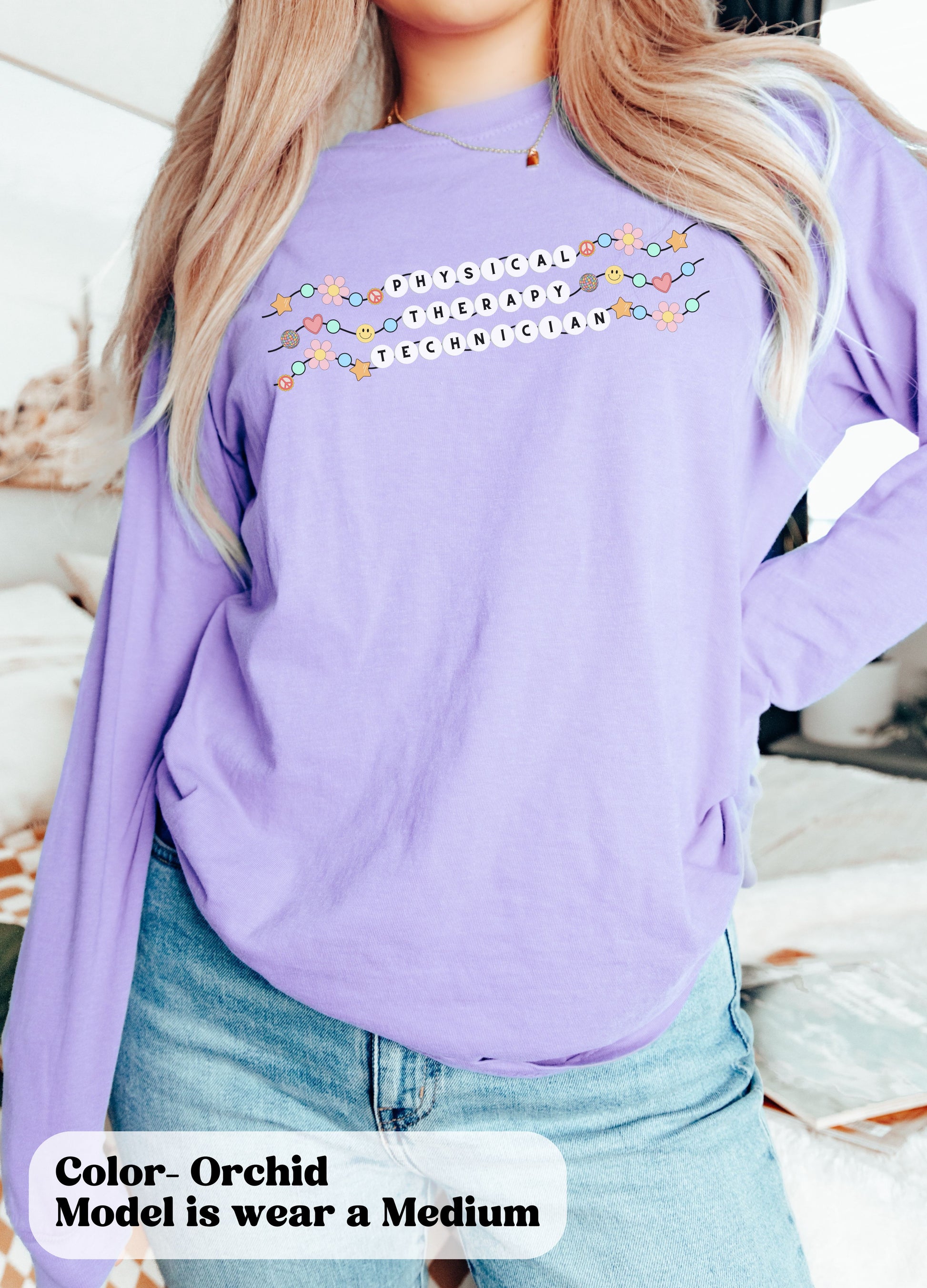Comfort Colors Physical Therapy Technician Friendship Bracelet Long Sleeve Shirt, PT Tech Tee, gift for Physical therapist Technician