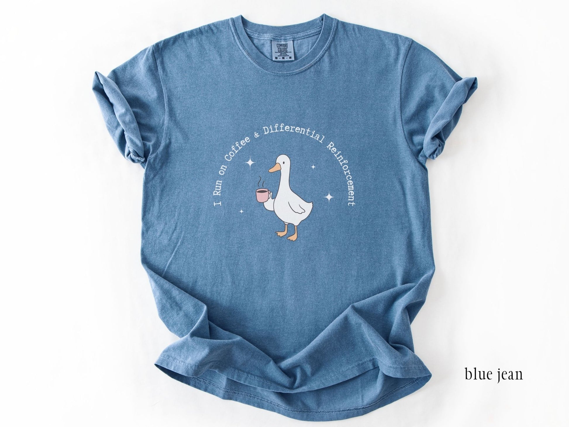I Run on Coffee & Differential Reinforcement Tee For the ABA professionals who know that behavior change takes consistency, data… and a lot of coffee. This tee features a quirky goose mid–coffee break, perfectly capturing the daily rhythm of reinforcement schedules and caffeine refills. Designed for BCBAs, RBTs, and ABA students, this shirt blends humor with a nod to evidence-based practice—making it an easy conversation starter in the clinic, at supervision, or off the clock.