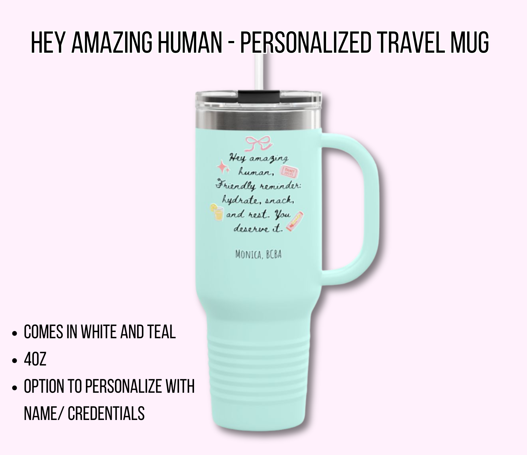 Hey Amazing Human” Travel Mug – Personalized Self-Care Reminder Cup for Teachers & Therapists, 40oz