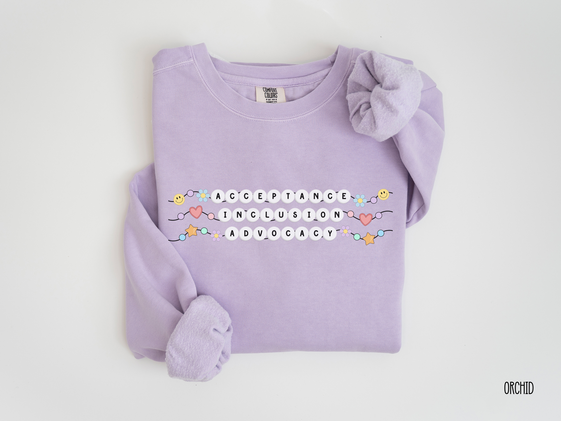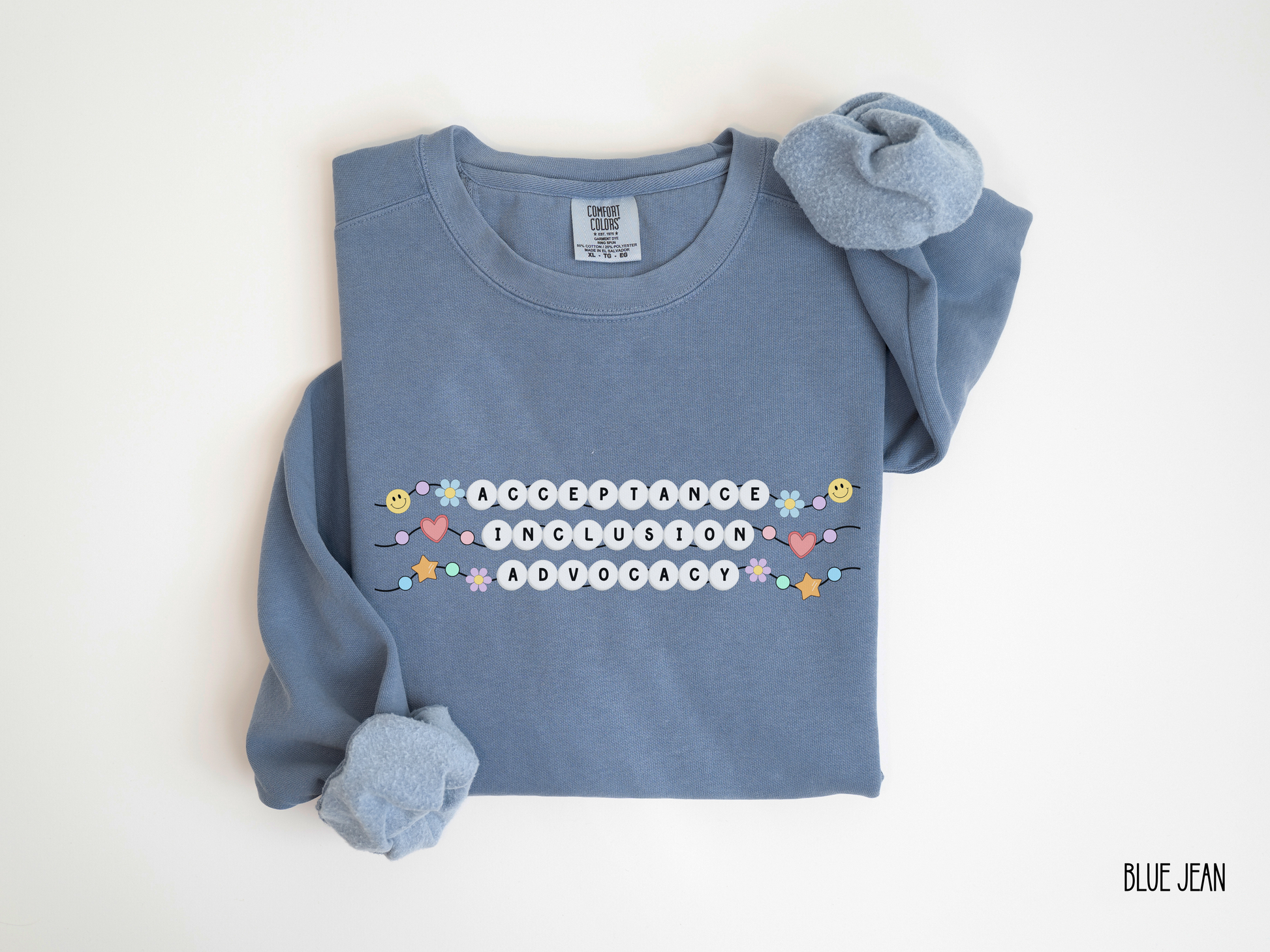 Inclusion and Acceptance Friendship Bracelet Sweatshirt, Special Education Advocacy Crewneck, Apparel for Teacher Therapist Advocate