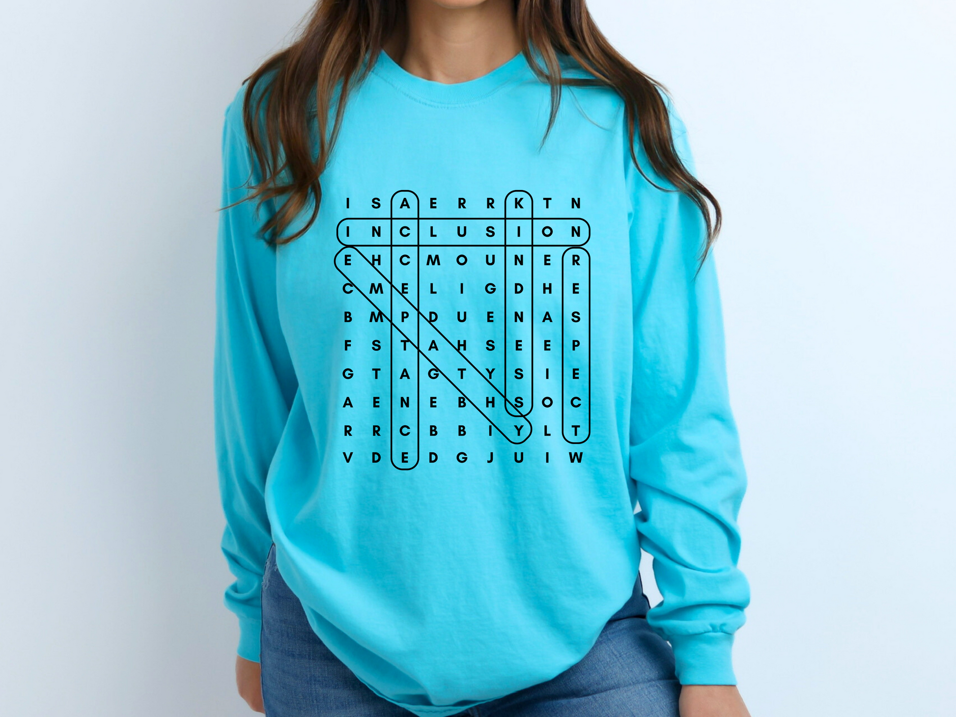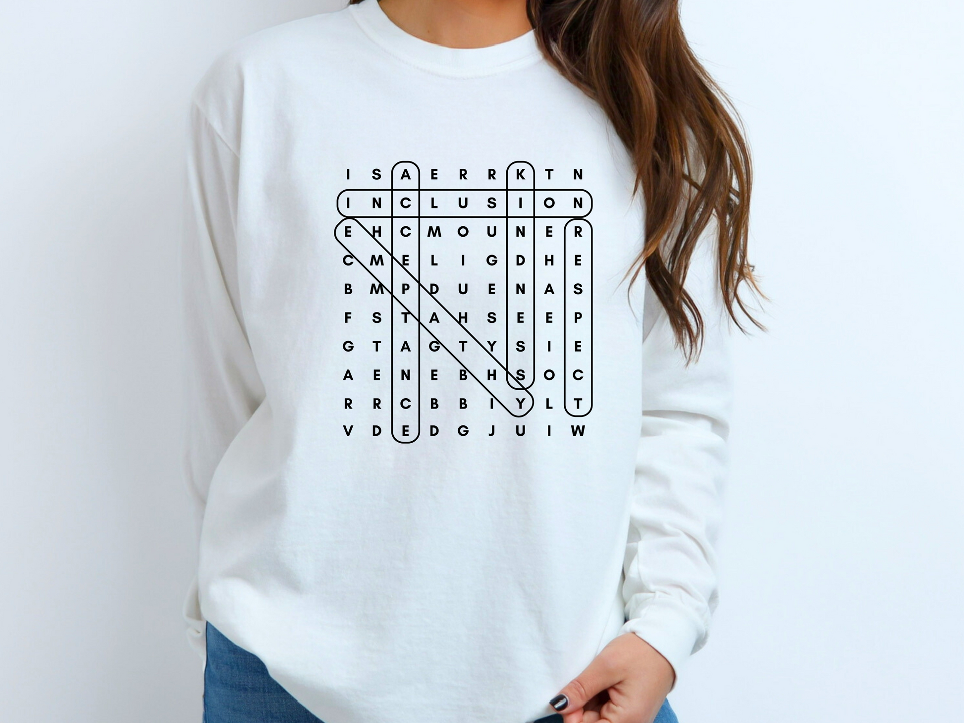 Inclusion and Acceptance Word Search Long Sleeve Shirt, Special Education Advocacy Tee, Shirt for Teacher Therapist Advocate
