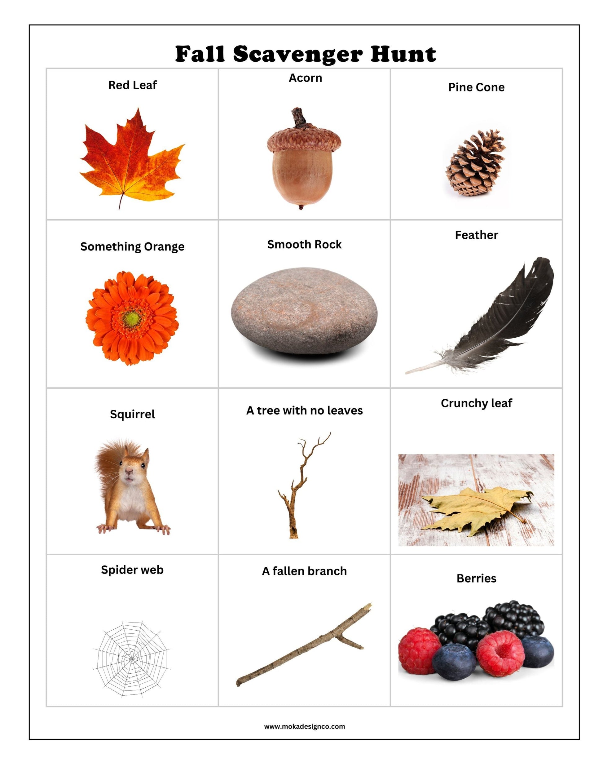 Outdoor Fall Scavenger Hunt Activity for Kids, Free Printable Activities