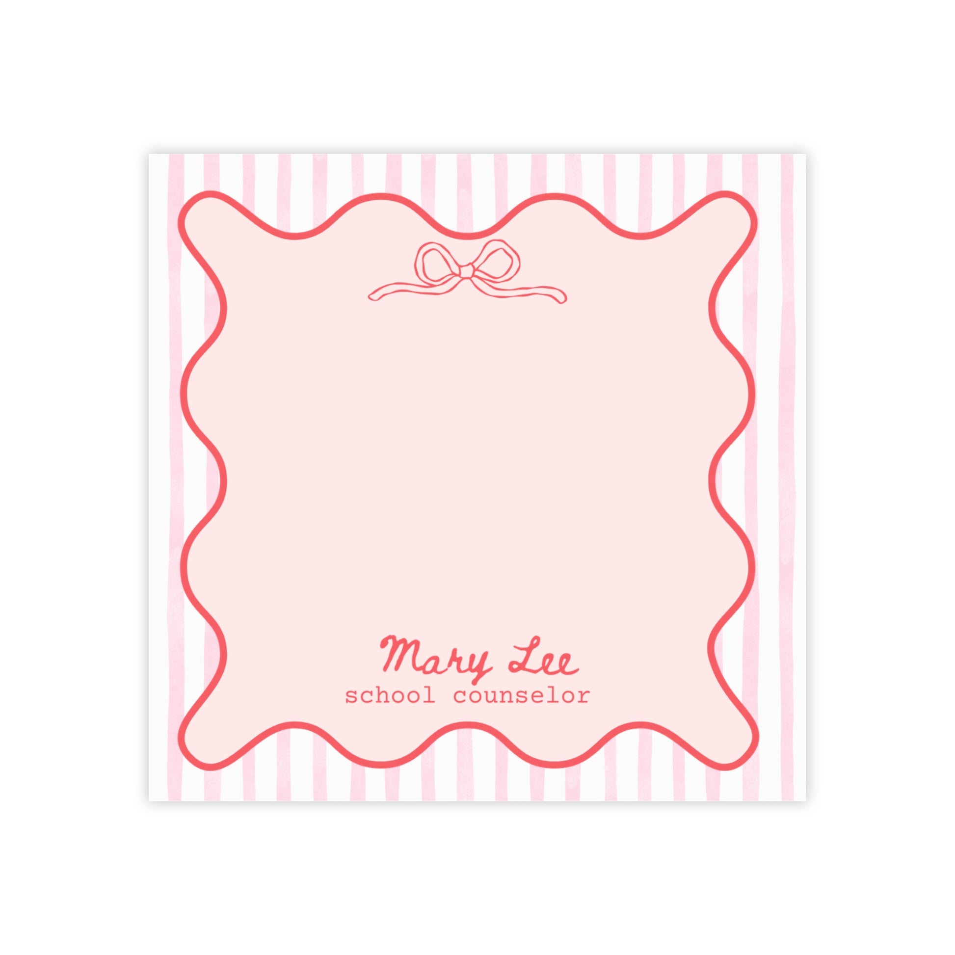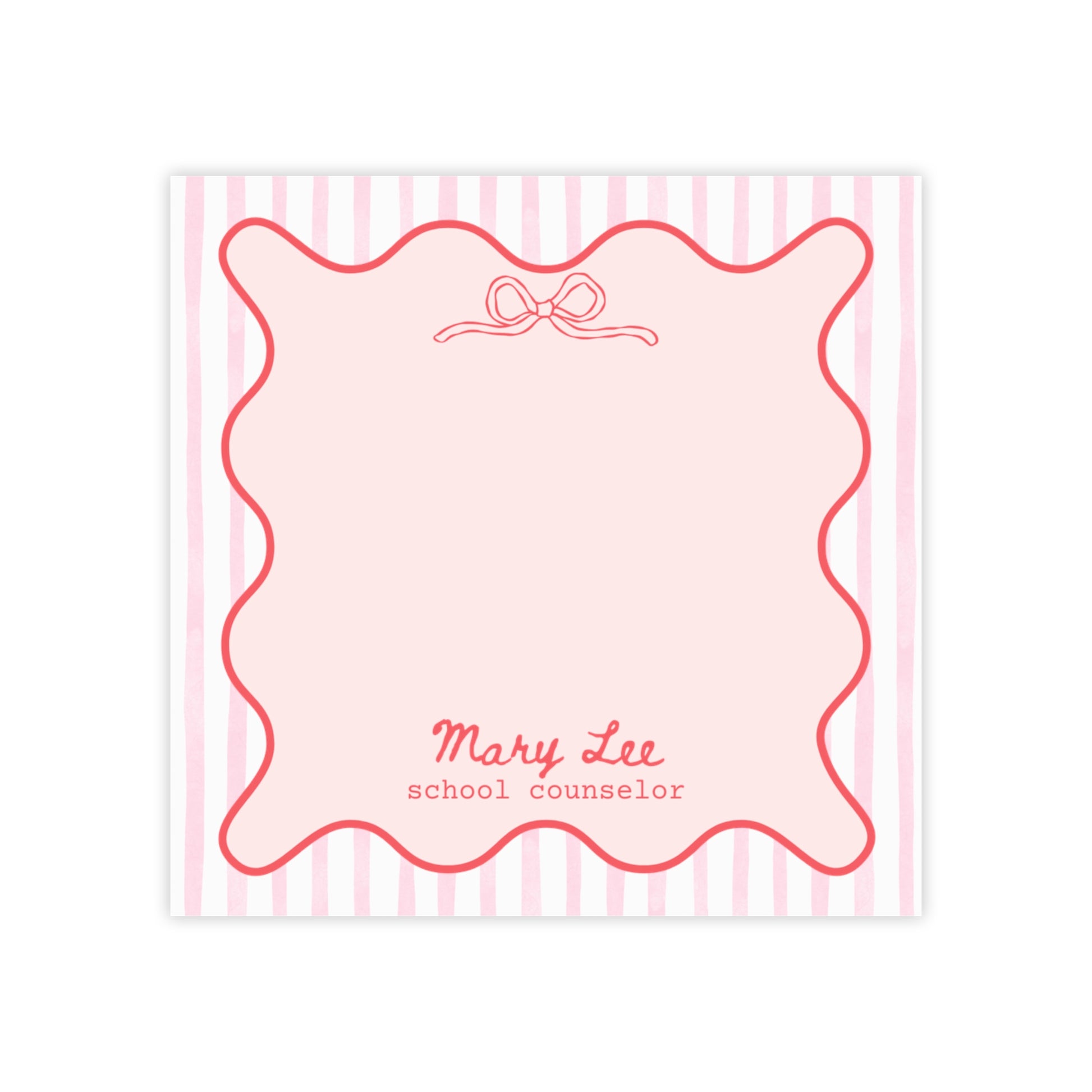 Personalized Post-it® Notes for Teacher, Counselor, Therapist, Custom Pink Bow Sticky Notes