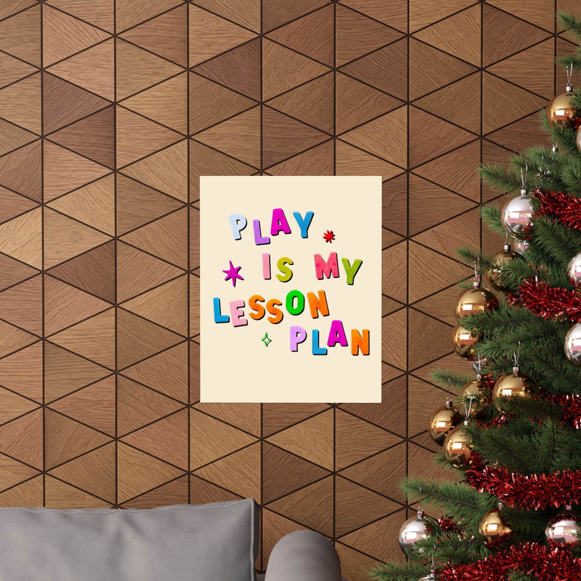 A playful matte poster that brings classroom joy to any indoor space. Bright, giclée-printed letters spell out “PLAY IS MY LESSON PLAN” in cheerful, tactile colors against a warm cream background. The museum-grade archival paper and matte, light-absorbing finish give each hue depth without glare, so the bubbly message reads clearly from across the room. Choose from many sizes to suit a reading corner, teacher workspace, or children's playroom. Its youthful energy encourages hands-on learning and sparks imagination every day.