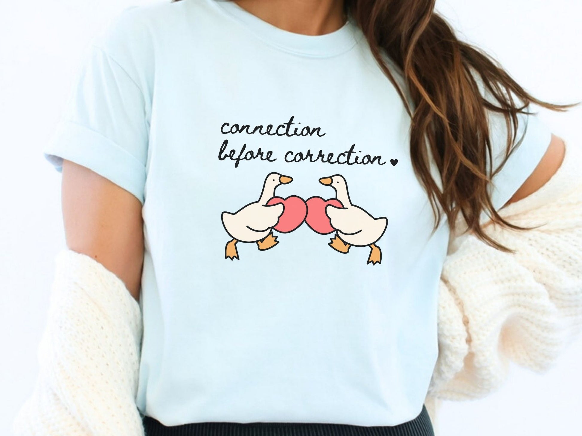 Valentines Day Advocacy Inclusion Tee, Connection Before Correction Goose Tee, Gift for Teacher Therapist Advocate